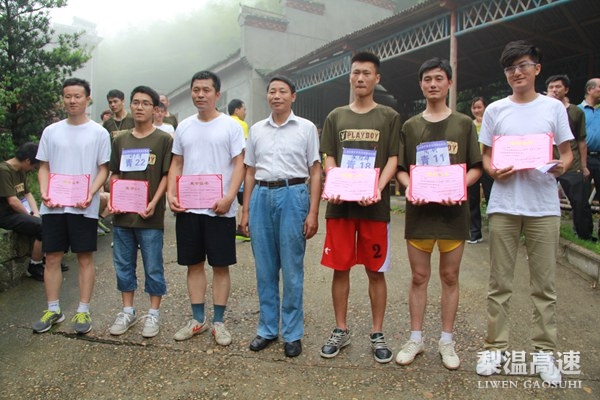 上午9点,尽管天空飘着绵绵细雨,位于梅岭的狮子峰因海拔高略显阴冷,梨温代表队员却个个精神抖擞,跃跃欲试。随着比赛开始口令的下达,梨温男青年代表队如猛虎下山一般冲了出去,开始就确定了领先优势,经过十五分钟左右的攀爬,梨温高速刘宽率先到达终点,为梨温代表队赢得开门红,此后的男女中年组第一名都被梨温代表队包揽。本次比赛分男女中青年4个组共设24个奖项,梨温高速代表队夺取了其中的11个。
