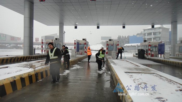 (图为赣浙收费处破冰除雪保畅 杨霞摄)