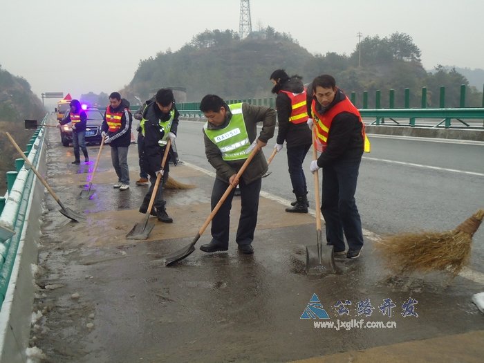 (图为东乡管理处破冰除雪保畅 张文风摄 )