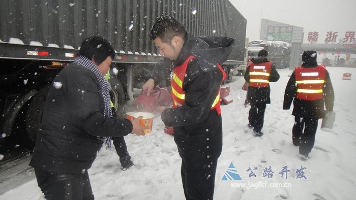 通过加强了与交警、路政部门的联系,在发生交通堵塞处及时配合疏导分流,确保了道路的快速畅通;积极做好了便民服务工作,为过往司乘人员供应热水、方便面等食品,让饥肠辘辘的司机朋友在冬日里感受到家的温馨,根据冰雪天气使用特殊服务用语,提醒司乘朋友小心驾驶,用贴心的话语温暖过往的司乘。