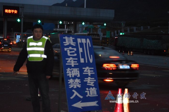 由于ETC专用车道是设置不停车收费系统,为了避免一些非ETC车辆驶入该车道导致堵车现象发生,赣浙处安排审带员简伟专门做好引导和解释工作。春运期间,不管是风吹还是雨打,一站就是十几个小时。几天下来,他的双脚已经开始浮肿了,但他还是坚持、再坚持,不管天有多冷,双手冻得有多么僵硬,但那标准的姿势永远是他的“招牌”动作,像一名钢铁“战士”一样,默默坚守在自己的工作岗位上。