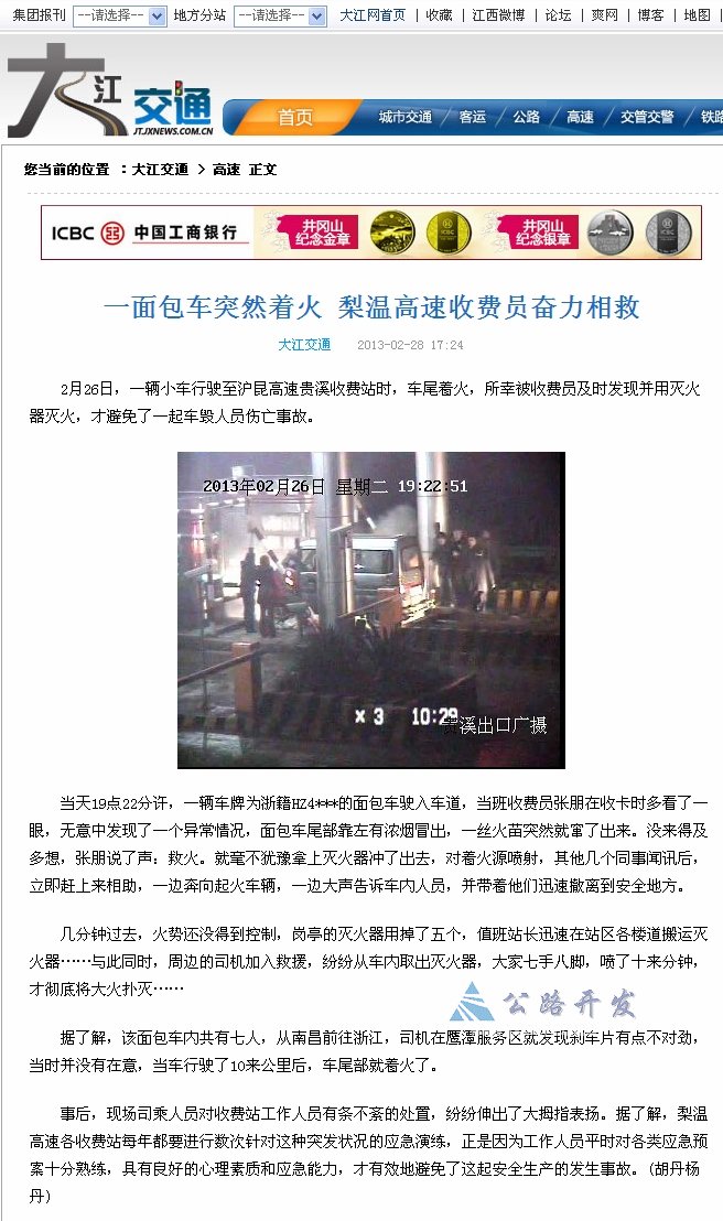 【大江交通】雷锋在身边:一面包车突然着火梨温高速收费员奋力相救