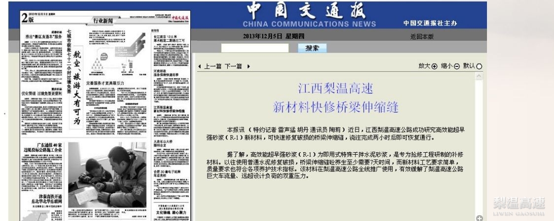 【中国交通报】江西梨温高速新材料快修桥梁伸缩缝
