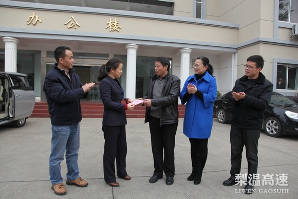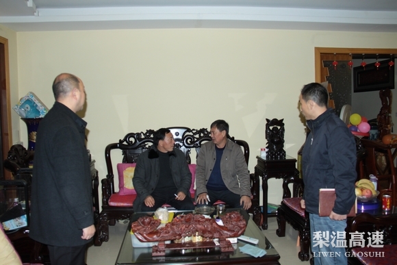 1月下旬,为营造祥喜庆的节前氛围。梨温公司组织开展节前走访慰问活动。党委负责人、总经理魏和仁,党委副书记周洪达分别深入梨温高速全线相关单位及退休职工家中,代表公司进行看望和慰问,并送来组织的温暖和新春的祝福。