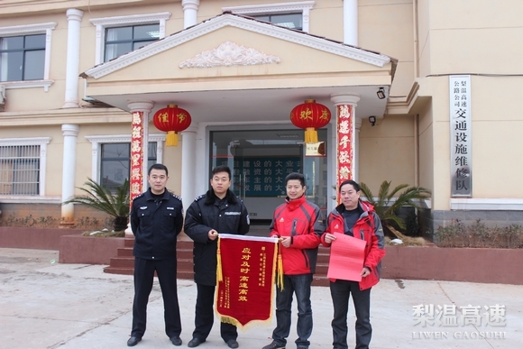 梨温高速维修队:交警送来锦旗和感谢信
