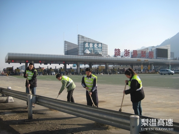 春运到来后,梨温高速逐步加大卫生整治力度,除在梨园收费广场每天增加现场打扫卫生次数,还增派后勤清洁人员,专人负责清理和处理垃圾,并派出工作人员蹲守,制止约束一些乱丢垃圾的行为。同时,该高速赣浙处还与当地交警、路政多方联动,有效劝离在高速公路兜售食品、在收费广场闲逛的人员。
