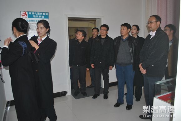 12月11日,由厅宣传处处长熊昌军带队的江西省交通行业“文明示范窗口”考评组等一行3人,深入梨温高速鹰潭西收费站检查指导工作,梨温公司党委书记周洪达,党办主任及管理处负责人陪同。