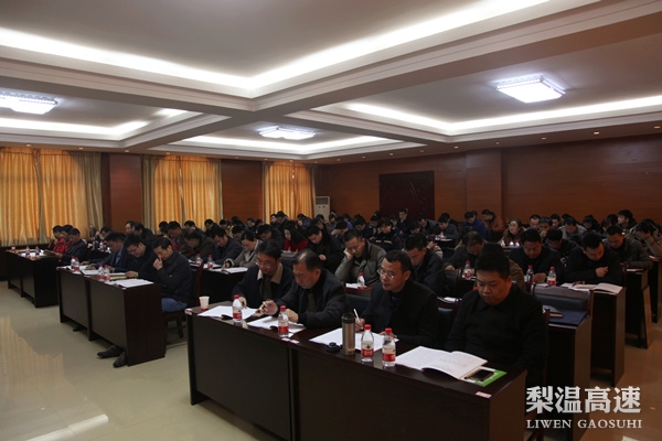 潘皓认真总结了2014年梨温公司工作,一是出新招,抓重点,收费任务圆满完成。收费环境进一步优化,保收能力进一步提升,收费力量进一步充实,收费管理进一步强化。二是抢进度,攻难点,迎检工作后位赶超。保畅能力有效提升,迎检能力有力提升。三是解难题、促和谐,综合管理再上台阶。全力优化基层服务,着力夯实基础管理,极力构建和谐氛围。