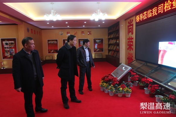 当天上午,黄铮轻车简从来到梨温公司,认真细致地参观了梨温公司荣誉室,对梨温公司12年多来在收费经营、党的建设、精神文明建设等各方面取得的成绩,给予了充分的肯定。座谈会前,梨温公司以视频的方式简要介绍了公司的各项工作和发展历程。