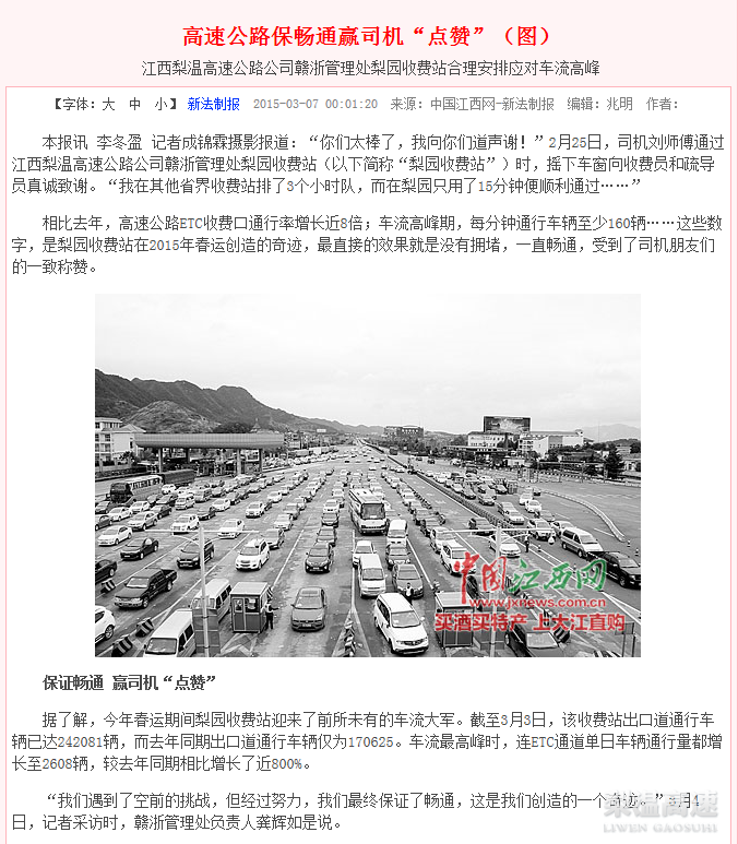 【媒体聚焦】高速公路保畅通赢司机“点赞”