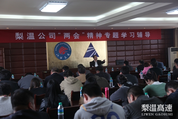 3月30日,正值全国上下深入学习贯彻“两会”精神之际,梨温公司邀请省政协常委、原省社科院院长汪玉奇教授进行了一次“两会”精神专题辅导,公司在家领导、副科级以上干部和部分员工共计110余人参加了学习。