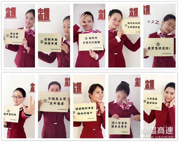 近年来,梨温高速鹰潭西站坚持开展“巾帼鹰西”公益行动,利用网络媒体传播文明、传递温馨,每年每月都推出了不同的服务主题,至今该活动运行2年之久。今年4月是交通安全月,鹰潭西站再次创新思路,围绕安全行驶十件事:安全带保平安,控制车距、保持车速,超车时,多用闪灯提醒,勿长时间占用超车道,疲劳驾驶危险,拒绝车窗垃圾,不随意占用“生命通道”,提前做好准备,转向分道口,小型客车国家免费日,江西高速鹰潭西站。制作了精美的链接,主题帖子发出后,迅速在微信、朋友圈、腾讯微博、新浪微博掀起一起转发新潮。 据悉,年初该站江西“路姐彩虹舞”视频上传网络,广受好评,这次再次显示其“巾帼品牌”在网络上的超群影响力。