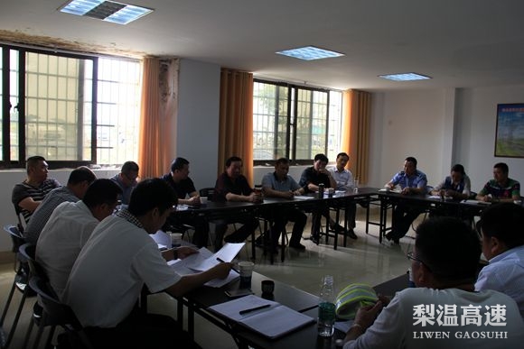 4月29日,总公司调研员傅春华、梨温公司总经理潘浩深入梨温高速技改项目办,就即将到来的限高分流工作与交警三支队、各管理处、施工单位负责人进行座谈,项目办主任漆志然作工作部署,副主任邓琼华、熊洪林、付群等参加座谈。