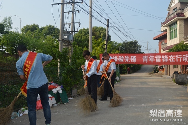 赣浙收费处团员青年走进附近梨园村,挨家挨户对村民进行了走访,向他们发放了宣传单,讲解了高速公路有关行人、行车的法律法规。随后该处员工拿起铁锹、扫把,对附近高速公路桥下涵洞和村道进行了清扫,改善了村庄的环境面貌。通过活动,增强了青年员工的服务意识,激发了团员青年的奉献精神,展现了高速青年的良好风貌。