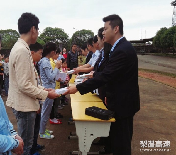 双金收费站组织青年职工到当地双金中心小学开展献爱心慰问活动,向学校送去了作业本,文具盒,爱心书包等学生用品,向该校贫困生送去了慰问金和助学基金,并鼓励孩子们一定好好学习,立志成才,长大后成为对社会有用的人。