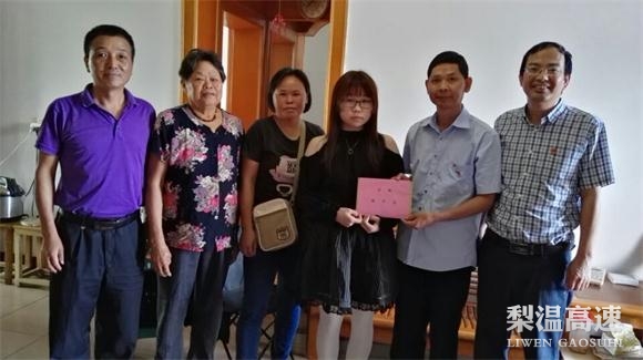 此前,经摸底调查知悉,陈梅丈夫为温厚高速职工,1999年因工伤死亡,她独自一人抚养小孩和家里老人,现小孩终于考上南昌大学科学技术学院,又在为缴纳一笔学费犯愁。