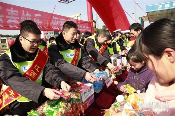 媒体记者还共同见证了由该站联合6家省界单位开展的“平安出行,情满旅途”主题活动,该活动通过向过往司乘免费提供饼干、方便面、矿泉水、平安符、地图等物品,为司乘送上新年的祝福。活动现场,返乡旅客受到来自家乡的热情欢迎,提前感受到浓浓的年味,纷纷为江西高速优质文明服务点赞。
