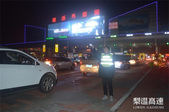 2017年春节后返程高峰已在梨温高速赣浙界梨园站“上演”,保畅先锋队是“演员”,司乘人员是“观众”,为了让司乘人员满意,先锋队们在收费广场上各尽其责、坚守岗位,认真践行“人等车”服务理念,让司乘人员快速通过,不在该站多耽搁一分钟。现在就来看看梨园站这支由不同年龄段、不同岗位组成的“年代秀”在春运保畅中的点点滴滴。
