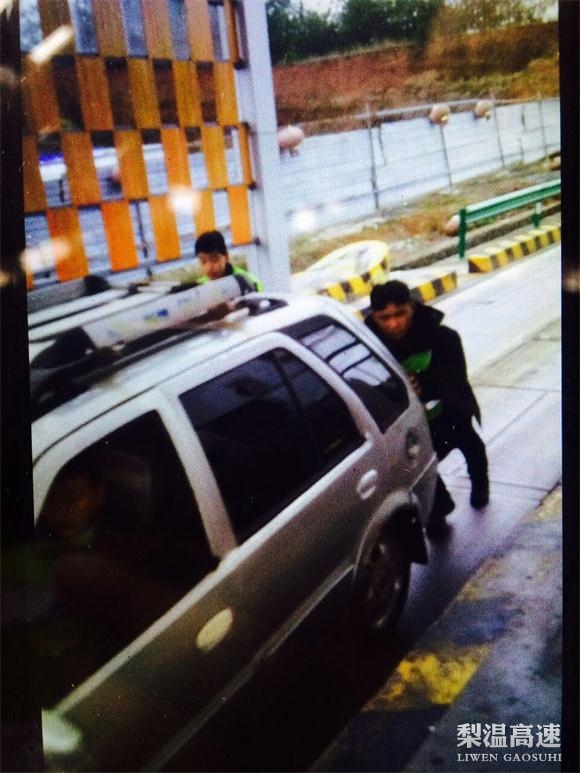 车上只有车主和他三四岁的儿子,车主一阵慌乱。收费员们见此情景,上前询问车主需要帮忙时,车主高兴地说:“那太好了,太谢谢你了”。