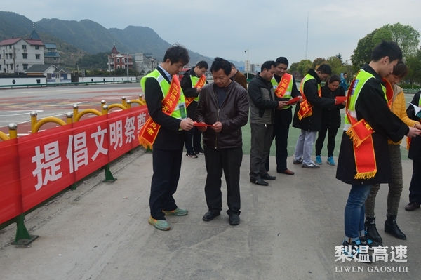 通过文明祭祀宣传活动,倡导文明的带头人,树立文明祭祀新风,过一个文明、绿色、平安的清明节,同时也让收费窗口在传统节日成为播撒文明、提升素质的窗口(赣浙处:杨霞)