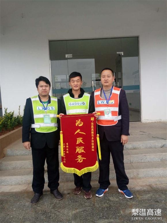 没想到就这点小小的举措,就在几天后;李女士通过快递公司给东乡西站寄来一面“为人民服务”字样的锦旗!并在感谢信中写道:“感谢东乡西收费站的热心帮助,感谢工作人员的尽职尽责,为人民服务!当时一个人在东乡人生地不熟,要不是你们的帮助,真不知该怎么办。”