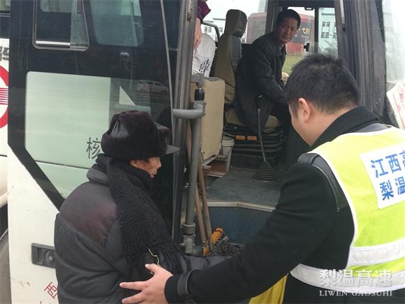 了解情况后,工作人员马上把老人扶上巡路车,把老人送到附近汽车站,给老人买来水和干粮,把老人送往回广丰的汽车上,帮老人垫付了回家的路费。