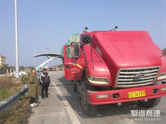 12月17日凌晨,一辆皖S-**197车牌的拉树货车行驶至南昌南中心上饶经开区收费站入口。当司机刚刚刷完赣通卡准备往前行驶时,车辆突然发生故障,无法前行,只能倒车。司机下车检查车辆,发现传动轴出现故障。看到车辆出现异常,收费站值班班长立即上前询问情况。