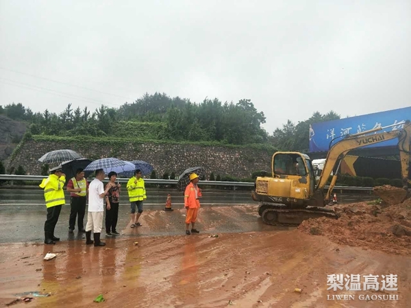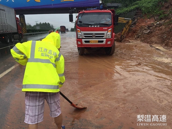 6月25日,由于连续集中强降雨,沪昆高速梨温段出现两处护坡坍塌,影响道路正常通行,南昌南管理中心紧急组织抢修,恢复道路畅通。