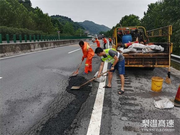 连续多日暴雨,造成所管养路段路面坑槽连片,并出现了冲刷点,路面通行能力不同程度下降。玉山养护所人员及时组织人力、物力、财力,调运砂石材料和机械设备,对全线的路面坑槽、冲刷点等进行突击抢修,同时安排人员对路面进行保洁。