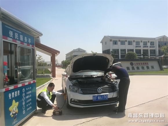 4月18日上午10时30分,南昌南管理中心南昌南收费站车道上急匆匆的跑来一个路过的司机向正在上班的收费人员求助,该司机正要赶往西客站乘坐高铁列车,在途径南昌南收费站时发现车胎漏气无法正常行驶,但又未带有备用轮胎,很是着急。