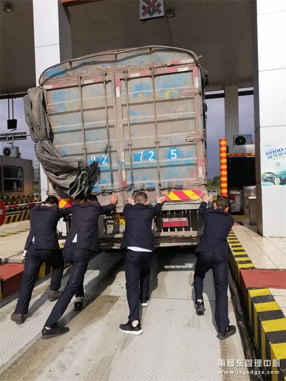 为不影响后方车辆正常通行,该站组织工作人员帮忙一起推车,几分钟后,4人齐心协力将重达6吨多的货车艰难地推到外广场一侧安全地带,并指引司机到最近的加油站加油,看着满头大汗的推车人员,司机激动和该站收费人员握手表达连声感谢。