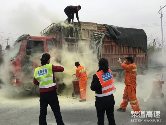 当天上午9点32分,一辆车牌号沪D****的货车驶入鹰潭西收费站匝道口时,车厢冒烟起火,货车驾驶员紧急停靠收费广场不远处准备自救。收费站当班班长发现险情后,立即上报值班站长,并组织5名现场工作人员,一边疏导过往车辆,一边拖上拉杆式灭火器帮助灭火。经过十多分钟扑救,明火被扑灭。为防止复燃,值班站长和当班收费员将事故车辆引导至安全地带,协助驾驶员打开车厢,掀开篷布,对货物进行降温喷淋。在众人合力下,10:20分左右,着火点被彻底扑灭,驾驶员对工作人员连连表示感谢。