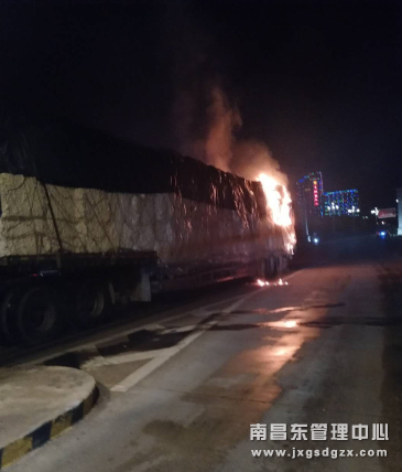 15分钟后,两辆消防车接警后到达现场,在大家的共同努力下,火情得以扑灭,安全隐患得到消除。据了解,该车装载为易燃的棉质品,火情如不及时控制,后果不堪设想。