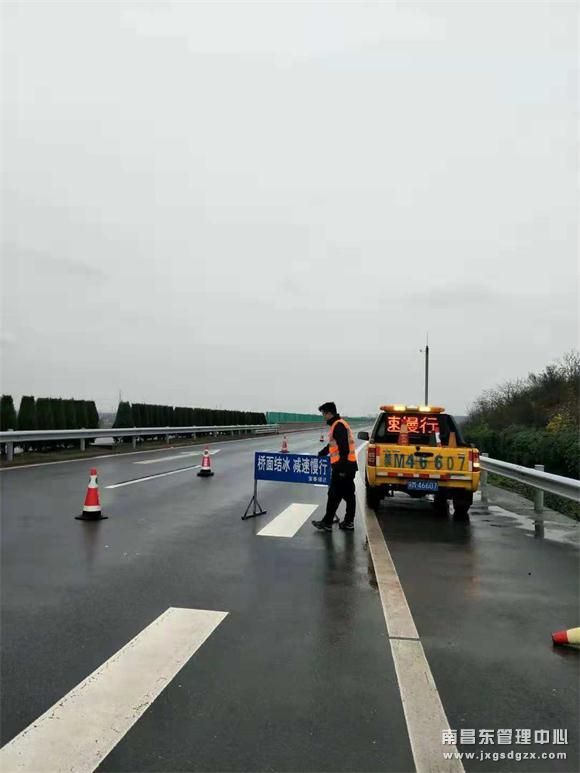 12月8日,南昌南管理中心都九管理所管辖路段都九、九绕高速公路全线迎来大范围低温雨雪天气,持续低温天气下,道路、桥梁结冰,对都九、九绕高速公路的通行带来了严峻考验。