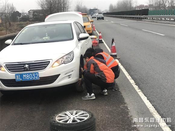 2月12日上午,东乡养护所志光养护站工作人员谢刚、熊剑青路巡至K625公桩处发现一辆小车停靠在应急车道,司机在一旁不知所措。