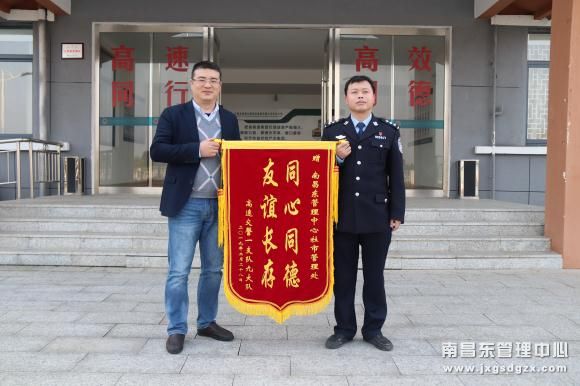 3月11日,高速交警一支队九大队将一面锦旗送到南昌南管理中心杜市收费所,对该所全力协助与服务表示感谢。