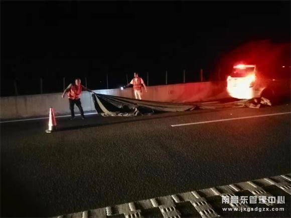 最终,硕大的篷布在大家的努力下很快就被清除,车辆恢复正常,小车车主对养护工作人员连声道谢,称赞他们为“高速公路守护神”!(谢观丰、钟运明)