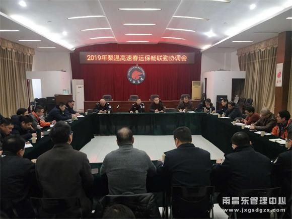 春运临近,为进一步做好高速公路春运应急保畅工作,确保道路安全畅通,南昌南管理中心紧紧围绕上级指示精神,结合自身工作职责,科学部署、提前谋划,全力做好春运保畅各项准备工作。1月3日下午,该中心组织在鹰潭收费所召开“2019年梨温高速春运保畅联勤协调会”。联合高速交警、高速路政、排障队共计40余人参加会议。