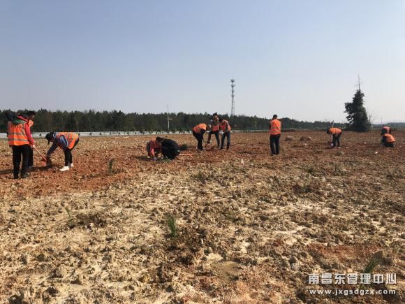3月12日下午,东乡养护所组织干部职工前往东昌段东乡停车区右幅开展植树,经过两个多小时的努力,该地2亩空地上竖起了200余棵树苗。