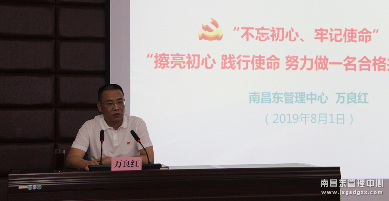 万良红同志结合自身感悟体会,结合学习《习近平新时代中国特色社会主义思想学习纲要》、《习近平关于“不忘初心、牢记使命”重要论述选编》等书籍和习近平总书记视察江西时的重要指示、省委关于答好“时代之问”指导意见等文件精神,谈到守初心、担使命,脑中要有信仰;守初心,担使命,肩上要有担当;守初心、担使命,心中要有人民。指出要真正把心思用到群众身上,千方百计为群众排忧解难。要认真履行好国有企业的社会责任,为江西在中部地区崛起贡献高速公路行业的力量;要认真抓好收费管理,不断亮化窗口形象,提升文明服务质量,努力打造“美丽高速 满意窗口”;就是要精心抓好道路养护管理,打造畅安舒美的通行环境,为百姓提供更加便捷、舒适的出行体验;要把全中心员工放在心上,认真解决员工最关心最直接最现实的问题,增强员工的幸福感和归属感,让员工享受到更多集团和中心改革发展的成果。