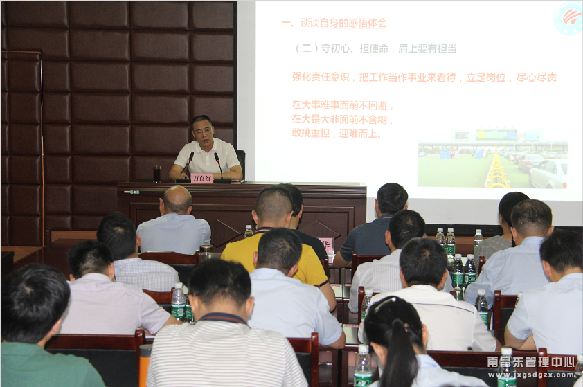 8月1日,中心领导、党委委员万良红同志在中心机关上党课,集团巡回指导组现场指导。中心党委其他同志、中心所属各单位、机关各部门、南昌南所计90余人聆听了这堂党课。