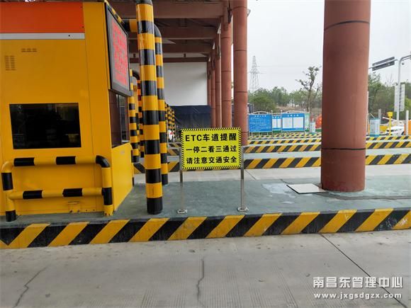 为了保障收费人员的人身安全,该站结合实际情况,以加强收费员自身安全防护、严格规范收费员穿行车道要求,合理设置安防设施等方面着手,有效推进车道安全工作,做到逢会必讲安全,提高员工警惕性。其次,还在ETC车道的安全岛上加装“ETC车道提醒一停二看三通请注意交通安全”的警告牌。