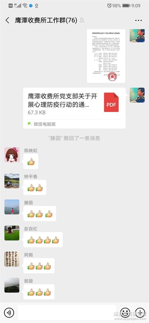 为舒缓员工压力、焦虑,南昌南管理中心鹰潭收费所的党支部书记带领党员,组建了一支9人的“彩虹”心理防疫志愿队,并邀请到国家二级心理咨询师、教练咨询师熊彩虹援助指导,巧用电话、微信为员工开展“一对一员工”、“一对一班组”的在线心理疏导,消除员工负面情绪,织起一张温暖的“心理防疫”网。