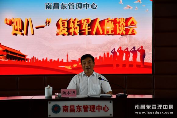 陈本华在7月31日上午参加迎八一复转军人座谈会,与中心复转军人代表共忆军旅生涯,回顾部队铮铮岁月,畅谈祖国发展,气氛庄严而热烈。