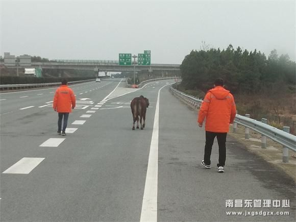 2月3日下午3时许,南昌南管理中心杨梅岭养护站养护员巡查至梨温高速南昌方向K556+500公桩时,发现一头体型硕大的公牛正在高速公路上奔跑,当时正值车流高峰期,许多过往车辆纷纷被它逼停在了高速公路主线,险些造成追尾事故,现场一度险象环生。