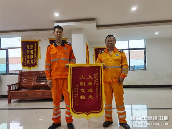 5月5日下午14:15东乡中队收到一份快递,打开一看原来是一面锦旗,上面写着“义勇当先、文明支柱”八个大字,该队队员看到锦旗上的车牌才想起,是之前救援过的一位车主寄过来的。