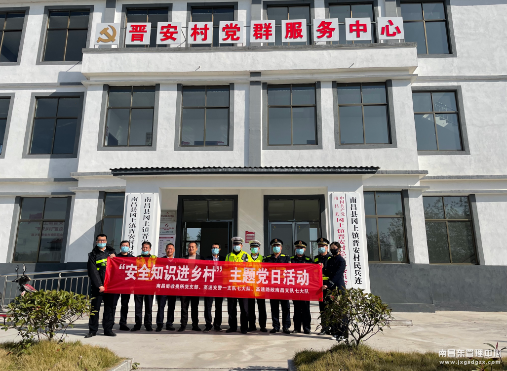 为进一步保障高速公路安全畅通的通行环境,防范因行人及非机动机上高速造成的交通安全隐患。11月25日上午,南昌南管理中心南昌南收费所党支部联合高速交警一支队七大队、高速路政南昌支队七大队走进周边乡村开展“安全知识进乡村”主题党日活动。