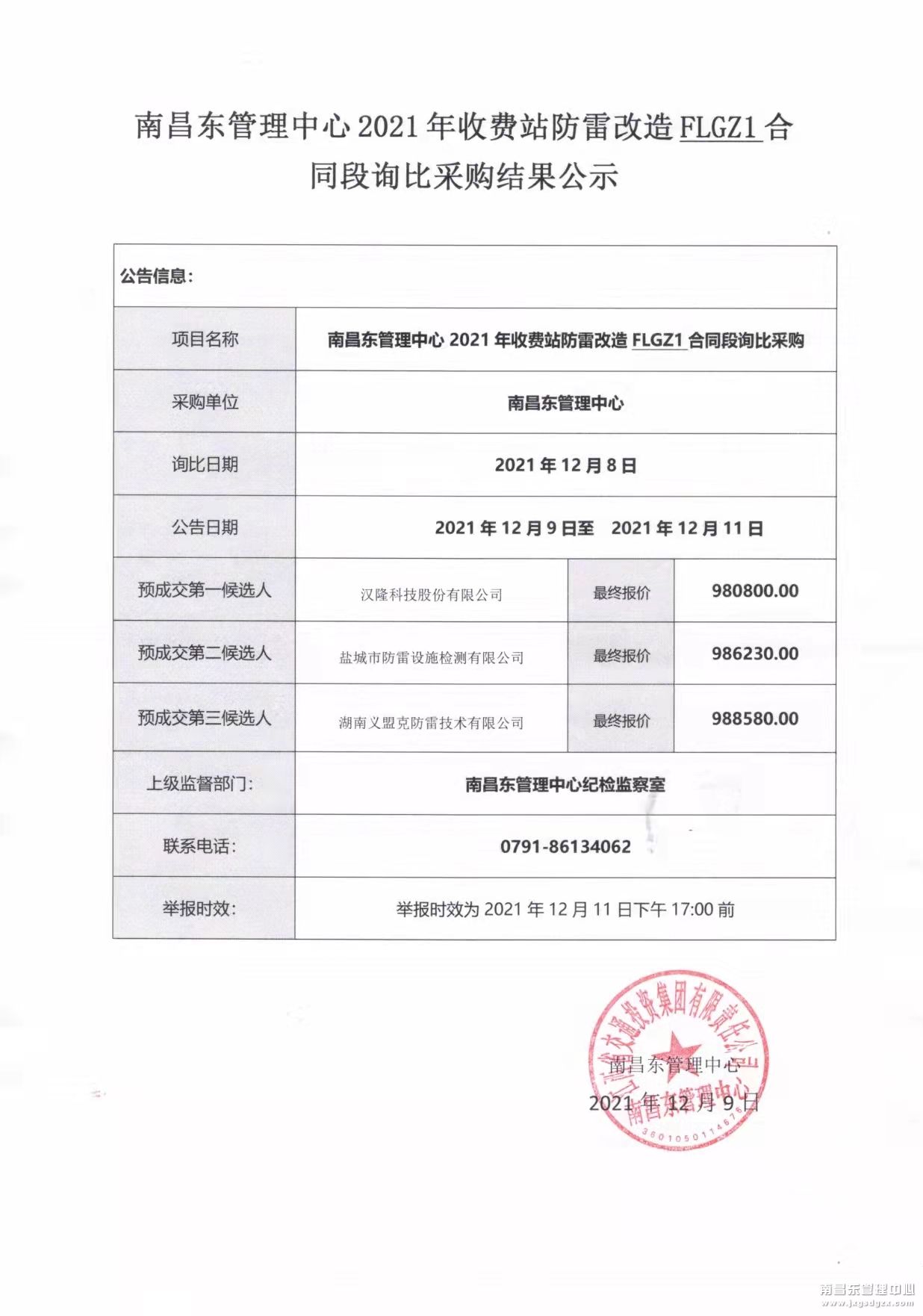 南昌南管理中心2021年收费站防雷改造项目FLGZ1标段询比公示