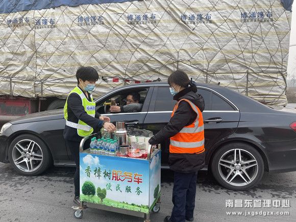 交通管制导致很多司乘滞留,该站值班站长立即推出组织香樟树班组成员开展便民服务,他们准备好方便面、小蛋糕、热水、一次性水杯等便民用品。为滞留收费站一整夜和赶早出门没有吃早餐的司乘朋友泡上热气腾腾的泡面,很多司乘朋友在拿到泡面难以置信的说“这真的是免费的吗?不要钱?我还以为是要买方便面……”当班班长还带领成员,一辆车一辆车的询问需不需要热水,并做好道路封道解释工作。司乘朋友称赞道“现在的服务真是越来越好了,樟树东站太暖心了!”