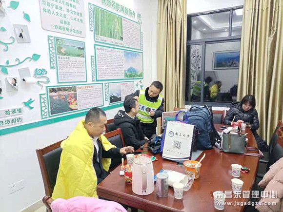 26日晚19时许,一辆赣B32K**的事故车辆被牵引至铁路收费站广场等待进一步处理,车上司乘五人在寒冬里不知所措。铁路收费站值班员丁世彪闻声赶到,立即将司乘一行安排到便民服务室,并为他们倒上热茶、开好空调,得知他们还未吃晚餐又及时安排了方便面等食品应急充饥。舒缓司乘人员紧张焦虑情绪后,了解到驾驶员和乘客有轻微流血擦伤,工作人员又取来应急药品帮助司乘清理伤口消毒杀菌。